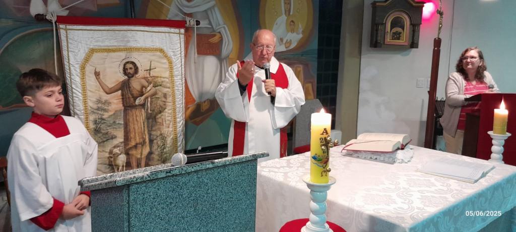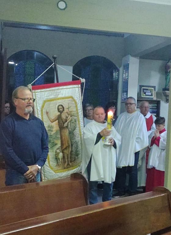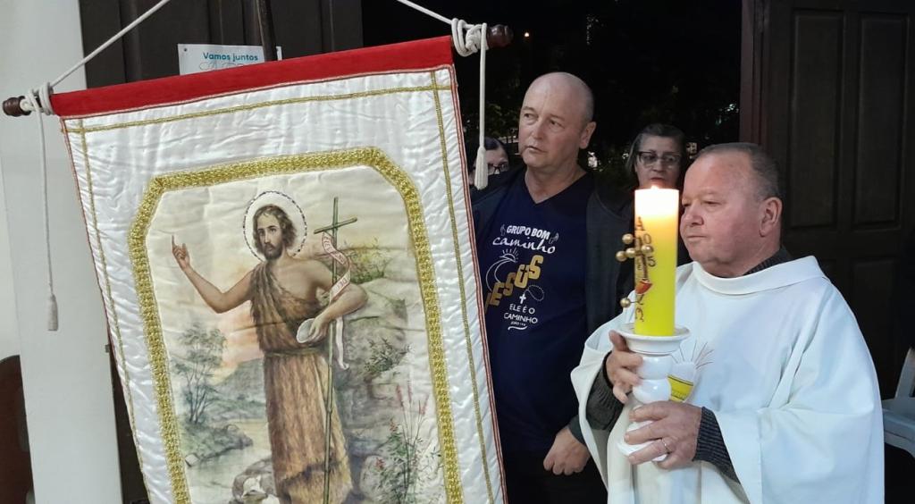 Chegamos ao fim da primeira semana de pré-novena em honra a São João Batista, padroeiro da Paróquia Catedral São João Batista. Neste sexto dia, a imagem do padroeiro no estandarte peregrino chegou à Capela Nossa Senhora do Rosário, no bairro Rui Barbosa. A celebração de ontem foi presidida pelo padre Renato Krause. Hoje, logo mais às 19h30, a imagem peregrina será levada para a localidade de Morro do Cedro, na Capela Imaculado Coração de Maria.